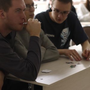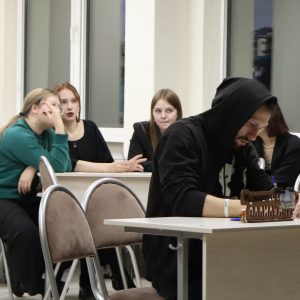 В Гуманитарном прошла вторая встреча интеллектуального клуба в двадцать седьмом сезоне игры «Мысли за минуту». В турнирной таблице действительно настоящий хаос — в этом году команды никого не пускают в явные лидеры, за кубки идёт по-настоящему жаркая борьба! Следите за соперниками, готовьтесь и разбирайте свежие фотографии!