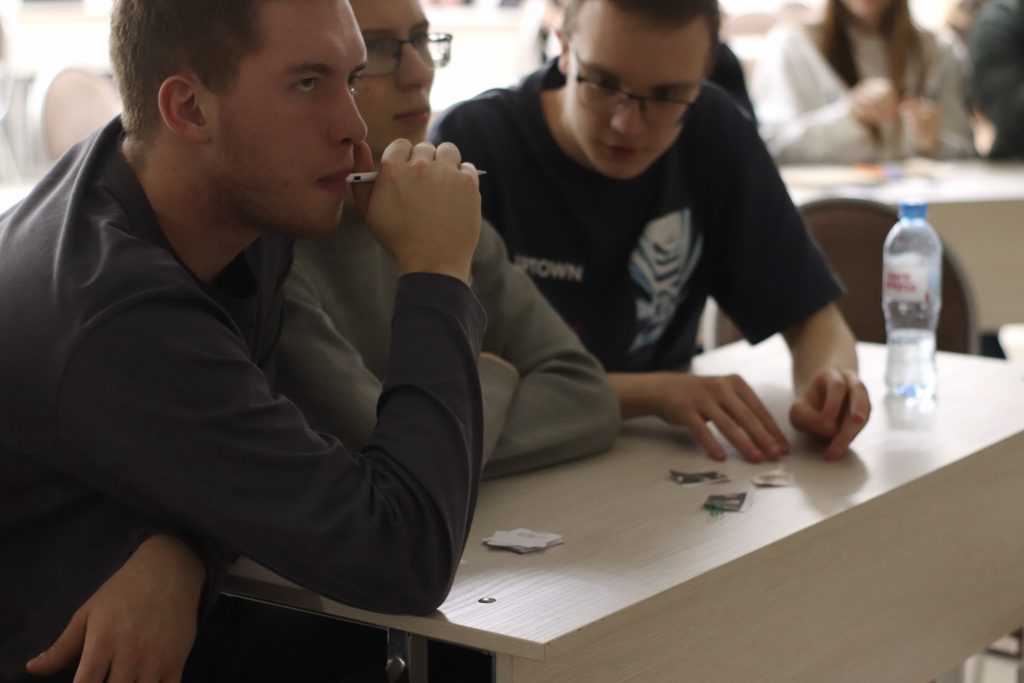 В Гуманитарном прошла вторая встреча интеллектуального клуба в двадцать седьмом сезоне игры «Мысли за минуту». В турнирной таблице действительно настоящий хаос — в этом году команды никого не пускают в явные лидеры, за кубки идёт по-настоящему жаркая борьба! Следите за соперниками, готовьтесь и разбирайте свежие фотографии!