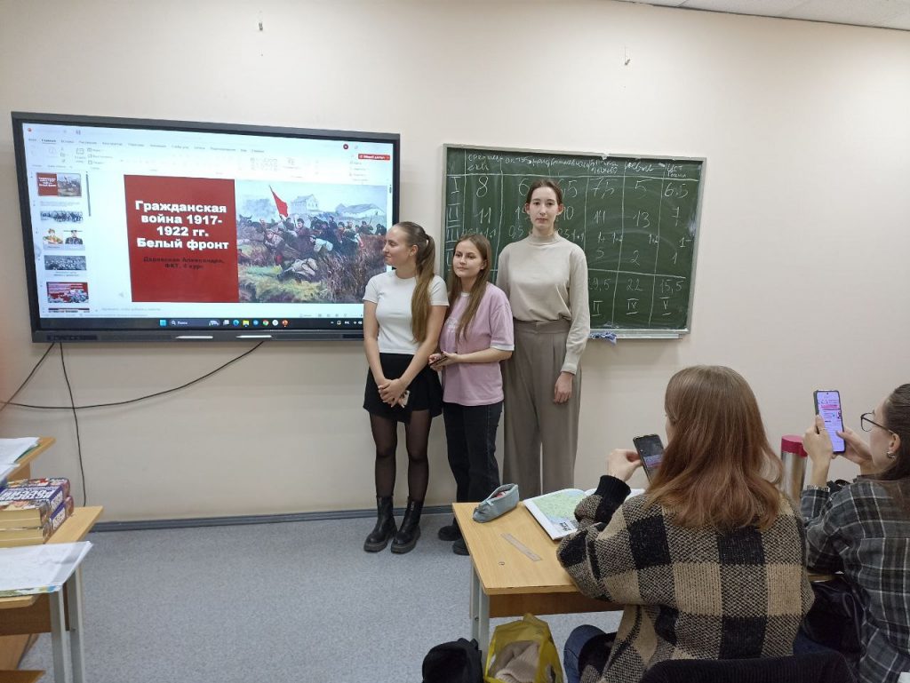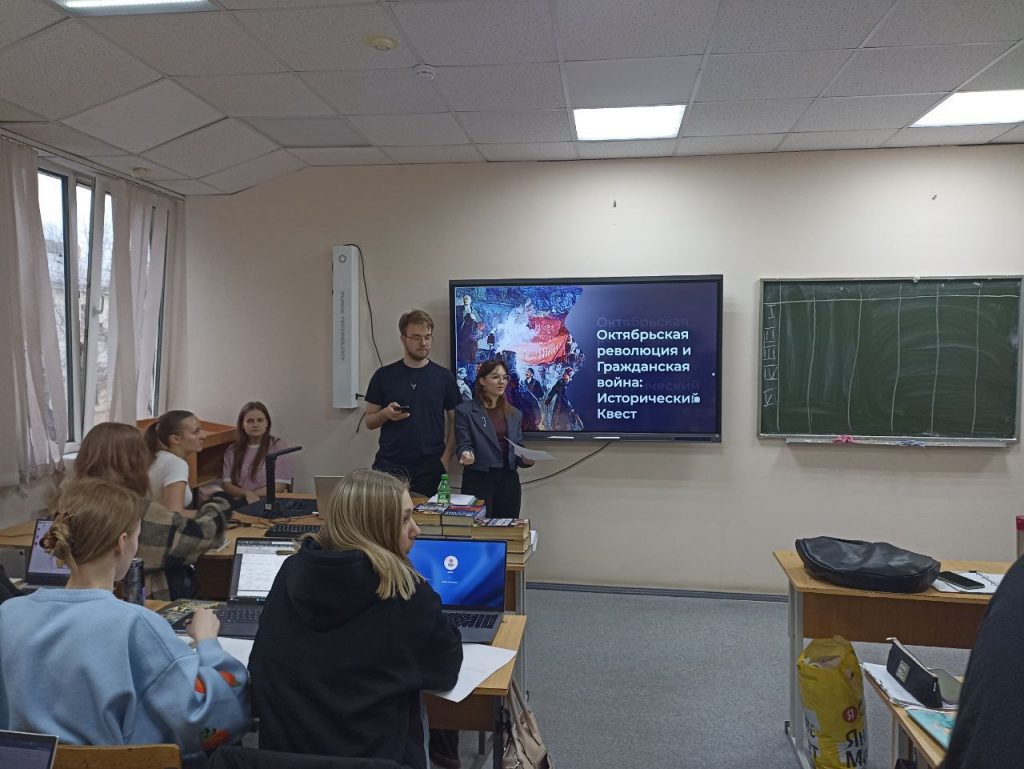 Активисты Патриотического клуба ГУ «Историческая память» 14 ноября организовали и провели увлекательный Исторический квиз «Октябрьская революция и Гражданская война» специально для студентов 4 курса Гуманитарного университета.