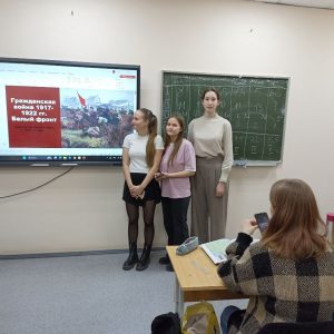 Отдельная благодарность активистам патриотического клуба — Виктории, Надежде, Анастасии, Егору, Алисе, Полине, Карине — тем, кто подготовил интересные вопросы и задания по такой важной исторической теме как Октябрьская социалистическая революция.