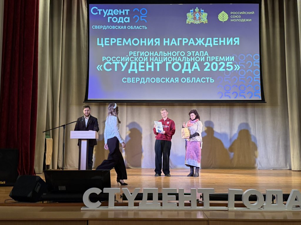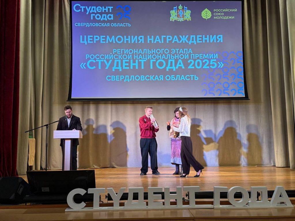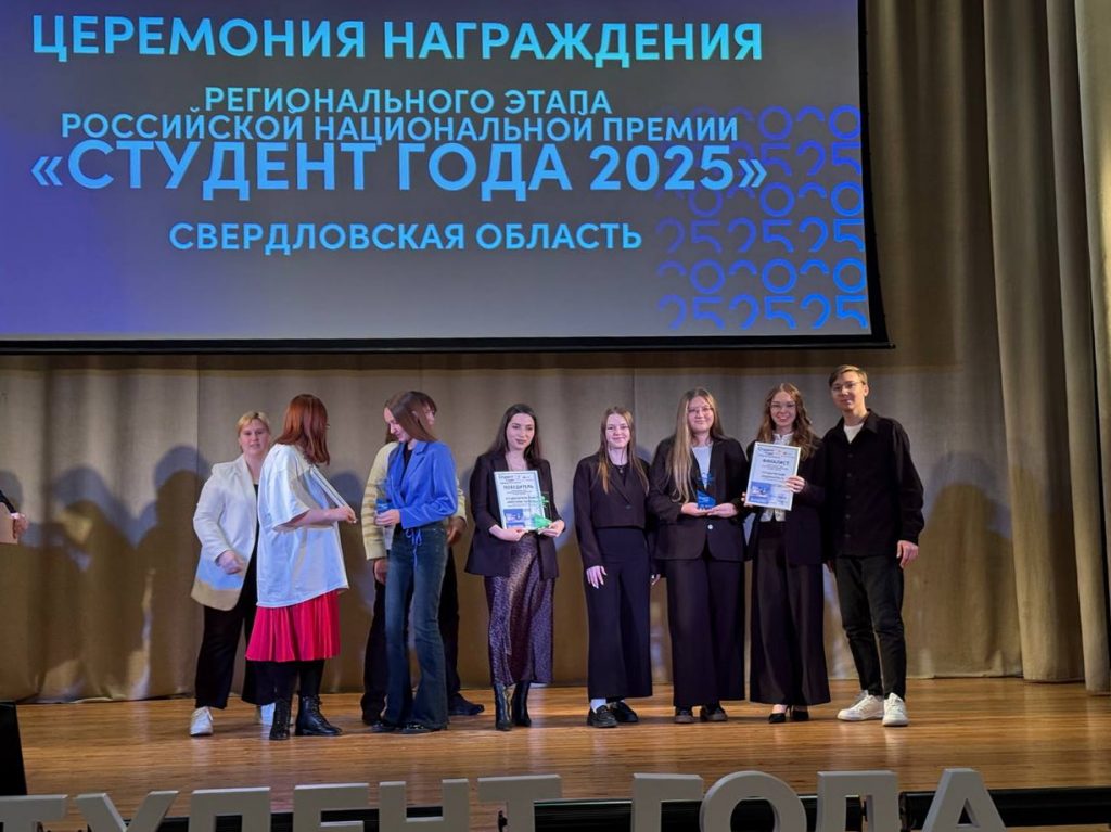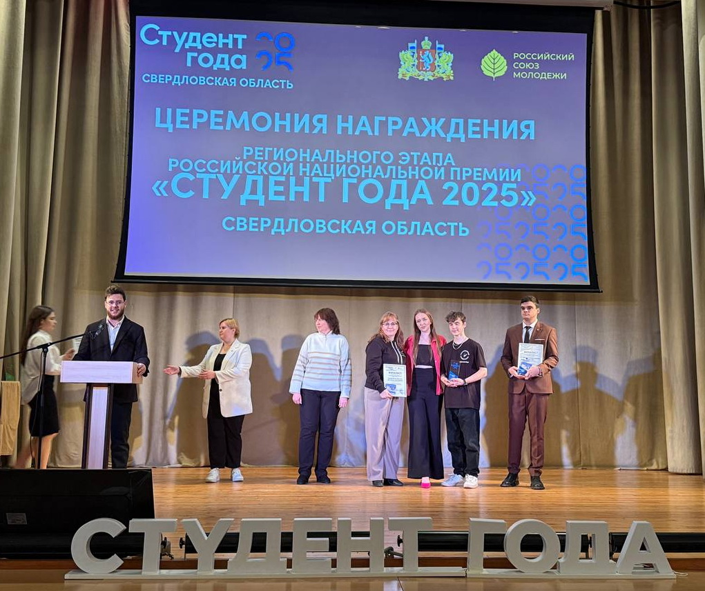 На Церемонии награждения Российской национальной премии «Студент года-2025» Свердловской области поздравили студентов Гуманитарного университета, ставших победителями и финалистами в региональном этапе. Мероприятие состоялось 24 ноября на площадке Уральского государственного колледжа им. И.И. Ползунова.