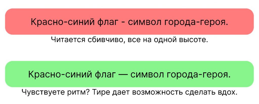 Почему это работает: тире создает в тексте дыхание. Как в музыке — без пауз получается каша из звуков.