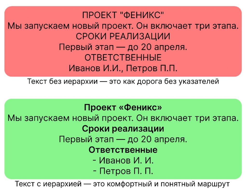 Чувствуете разницу? Первый текст мы читаем с усилием, второй — принимаем сразу.