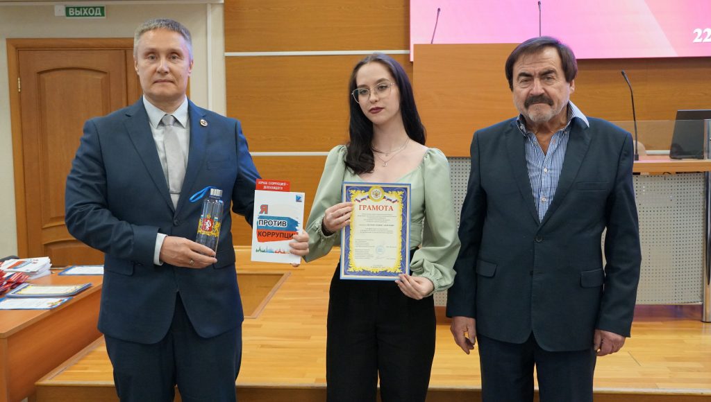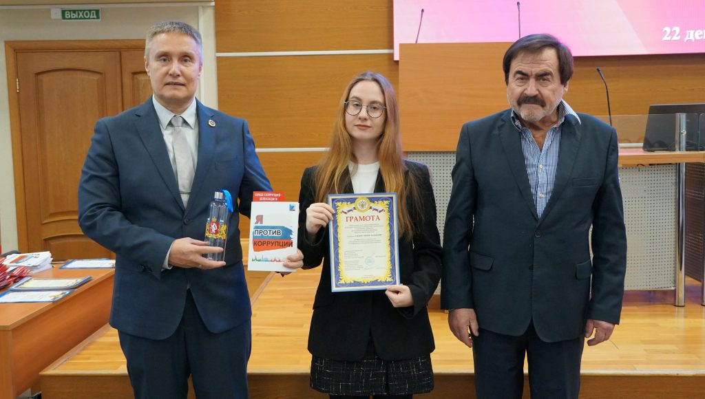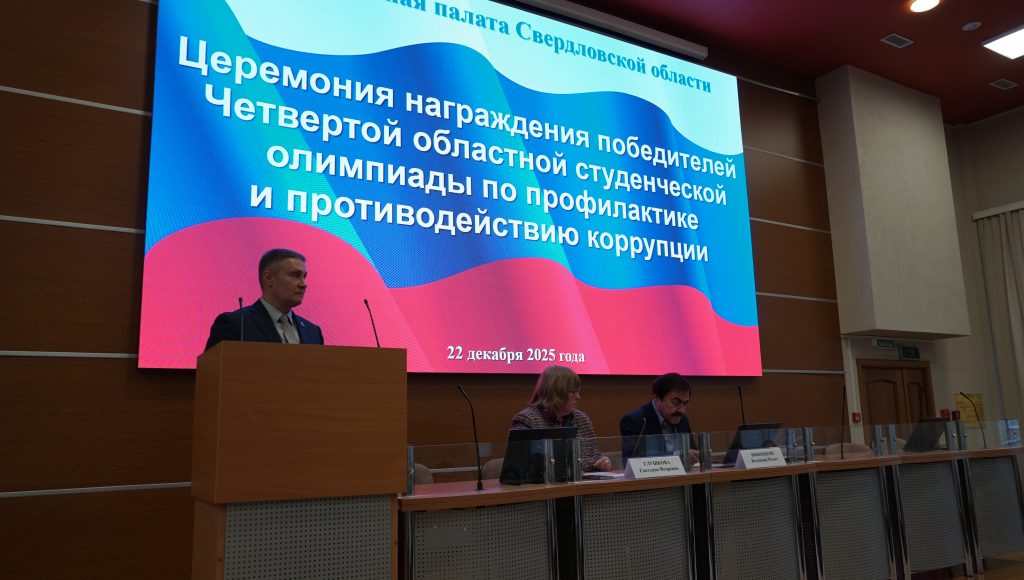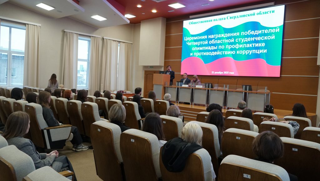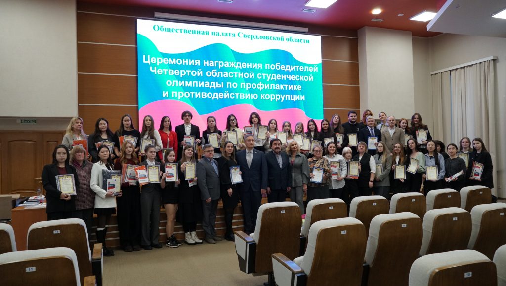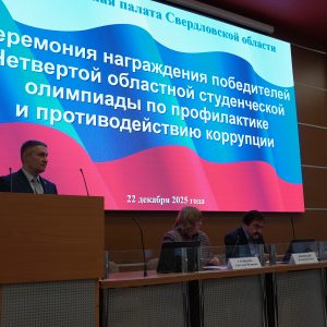 22 декабря в торжественной обстановке в Общественной палате Свердловской области состоялась церемония награждения победителей Четвертой областной студенческой олимпиады по профилактике и противодействию коррупции. Мероприятие прошло в рамках XI Антикоррупционного форума и стало стартовым мероприятием форума, который прошел в Екатеринбурге с 3 по 10 декабря текущего года.