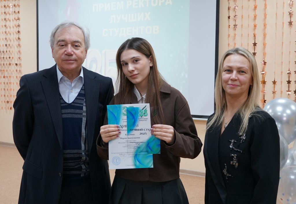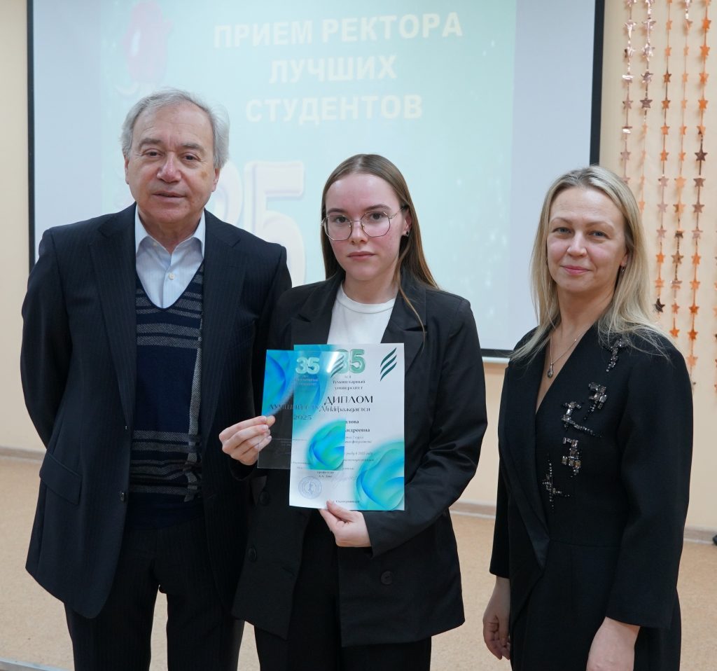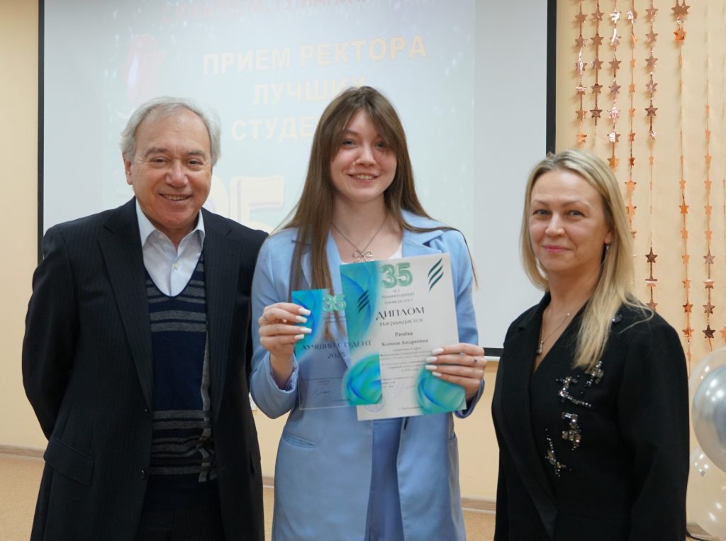 Для меня ректорский приём – это кульминация четырёхлетнего пути. Каждая награда была шагом вперёд, а четвёртая, особенно на таком уровне, яркое подтверждение, что я шла правильной дорогой. Звание «Лучший студент» – не только честь, но и мотивация не останавливаться.