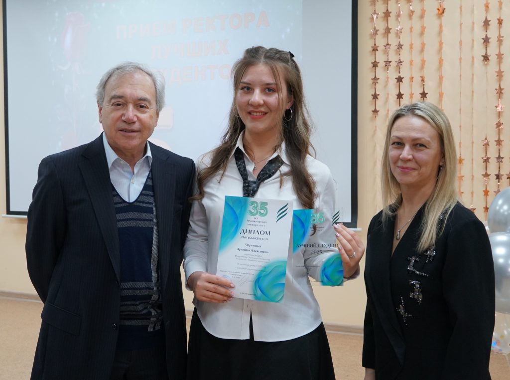 Хочу выразить огромную благодарность ректору и университету за организацию ректорского приема. Это не просто торжественное мероприятие, а настоящий момент признания, который запоминается навсегда. Быть в числе лучших студентов – большая честь и ответственность. Очень ценно, что в нашем вузе есть такая традиция, которая вдохновляет не останавливаться на достигнутом и подтверждает: усердная учеба и активная деятельность действительно замечены и оценены. Спасибо за атмосферу праздника, поддержку и мотивацию двигаться дальше!