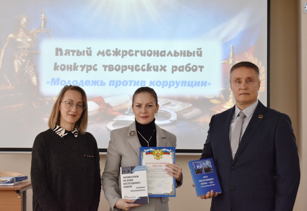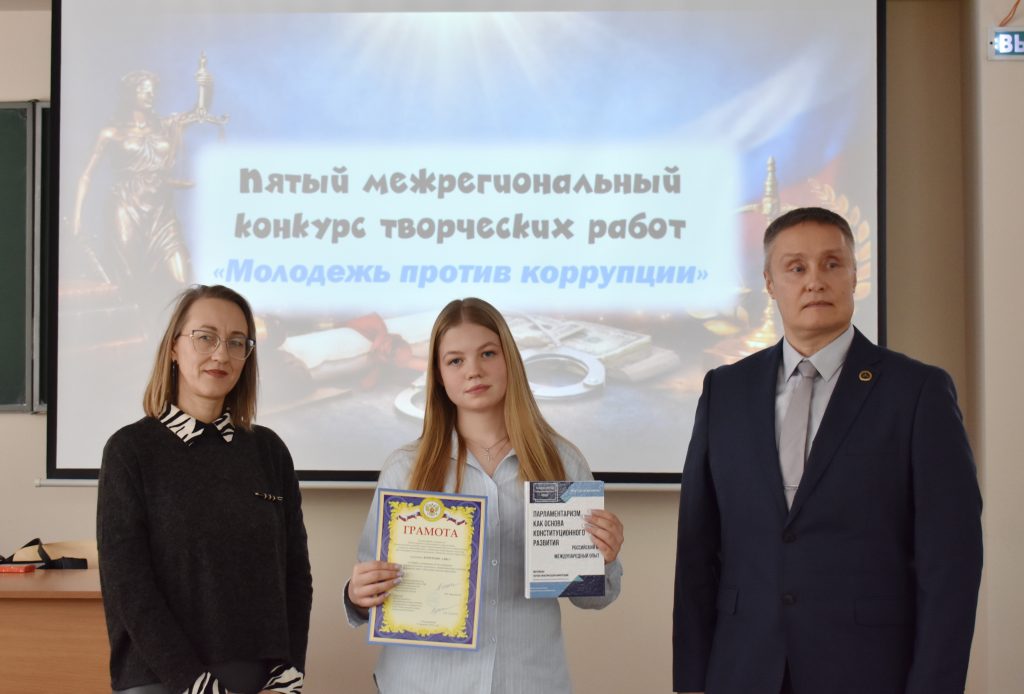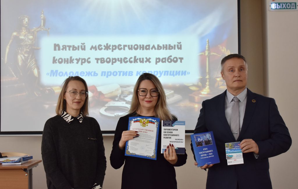 Финалисты были награждены грамотами и памятными призами (книгами), наставники — благодарственными письмами, настольными календарями и комплектами книг. Родителям финалистов, а некоторые приехали целыми семьями, также были вручены памятные призы — книги. После награждения С.И. Глушкова рассказала о просветительских, в том числе антикоррупционных, мероприятиях 2026 года и пригласила наставников (учителей школ и преподавателей вузов) принять участие в подготовке сборника «Профилактика и противодействие коррупции: опыт Свердловской области».