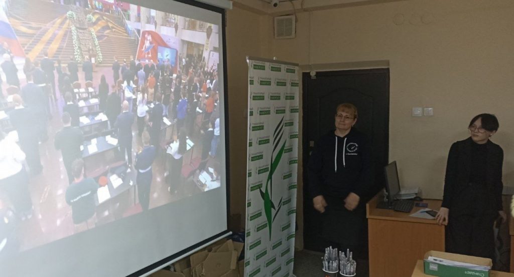 Перед началом мероприятия ребята посмотрели открытую трансляцию «Диктанта Победы».