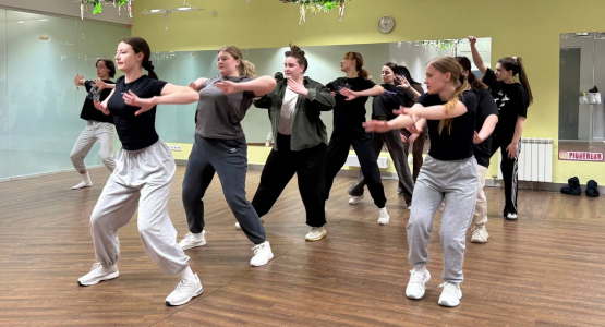 Во время мастер-класса участники познакомились с основами джазового и эстрадного танца и попробовали ключевые движения.