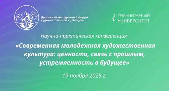 Гуманитарный университет приглашает 19 ноября к участию в научно-практической конференции «Современная молодежная художественная культура: ценности, связь с прошлым, устремленность в будущее» в рамках II Уральского молодёжного форума художественной культуры.